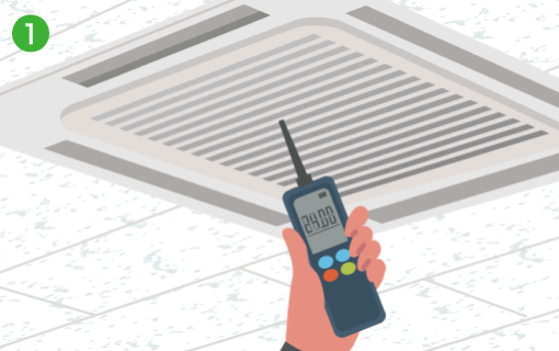 室内機吸い込み/吹き出し空気温度を測定し、室内機のフィルターや熱交換器の汚れ状態を確認、機器の動作確認を診断します。