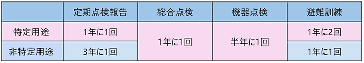 消防避難訓練は年1回以上、特定用途の建物については年2回以上の実施が、消防法施行規則第三条第10項*3 に定められています。